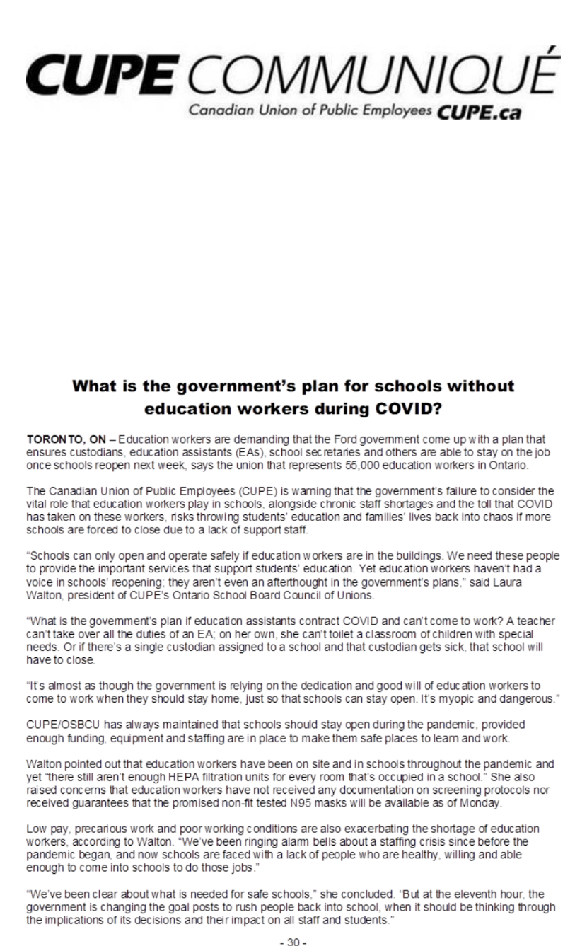 Further to recent memos from the Ministry of Education, please find attached updated Instructions issued by the Office of the Chief Medical Officer of Health that outline updated requirements for