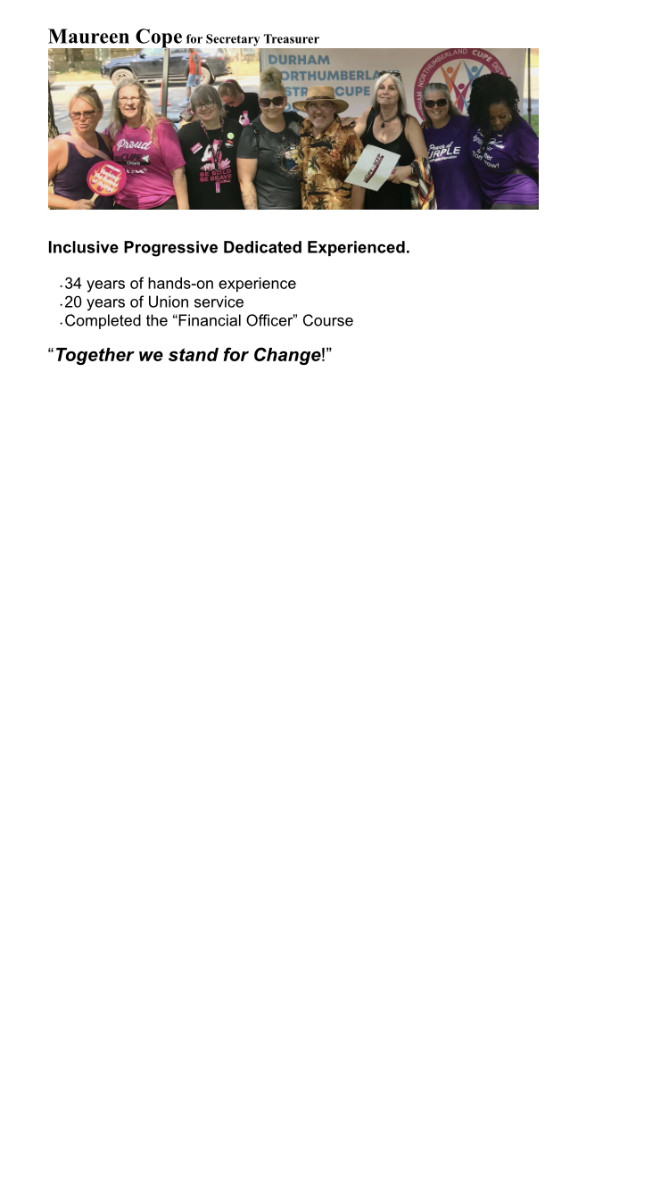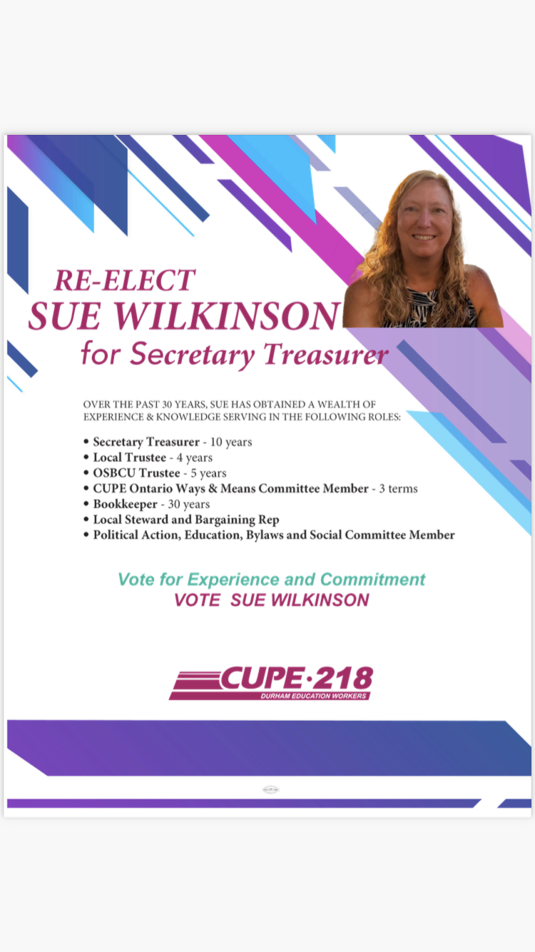 Online Elections Saturday, November 19, 2022 – Nominees Details will be sent to your cupe email in the coming weeks regarding Virtual Elections. CUPE Local 218 President Nominees: Brandy Townson Dennis