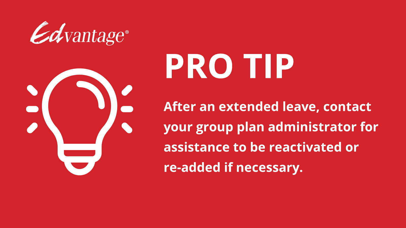 As primary member of your Edvantage account, make sure you are an active member of the Edvantage program after any short-term leave. Learn more: http://bit.ly/3Sr8OyC